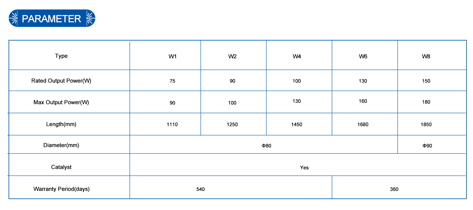 Reci W/T Series CO2 Laser Tube