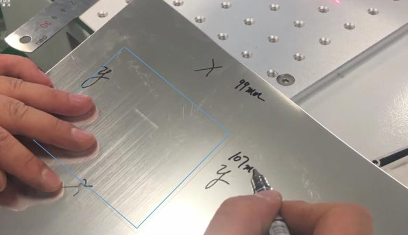 4단계:예를 들어 110*110mm와 같은 직사각형을 그리고 테스트 보드에 표시한 다음 직사각형의 길이와 너비를 측정하면 실제 표시 크기가 원하는 표시 크기가 아니라는 것을 알 수 있습니다. 예를 들어 우리가 측정된 크기는 99mm*107mm입니다(기계마다 결과가 다릅니다)